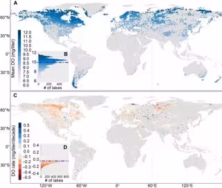 Um estudo publicado na Science Advances, liderado pelos professores Shi Kun e Zhang Yunlin, do Instituto de Geografia e Limnologia de Nanjing da Academia Chinesa de Ciências, em colaboração com pesquisadores da Universidade de Nanjing e da Universidade de Bangor (Reino Unido), quantifica os efeitos do aquecimento climático contínuo e da intensificação das ondas de calor nos níveis de oxigênio dissolvido na superfície de lagos em todo o mundo.