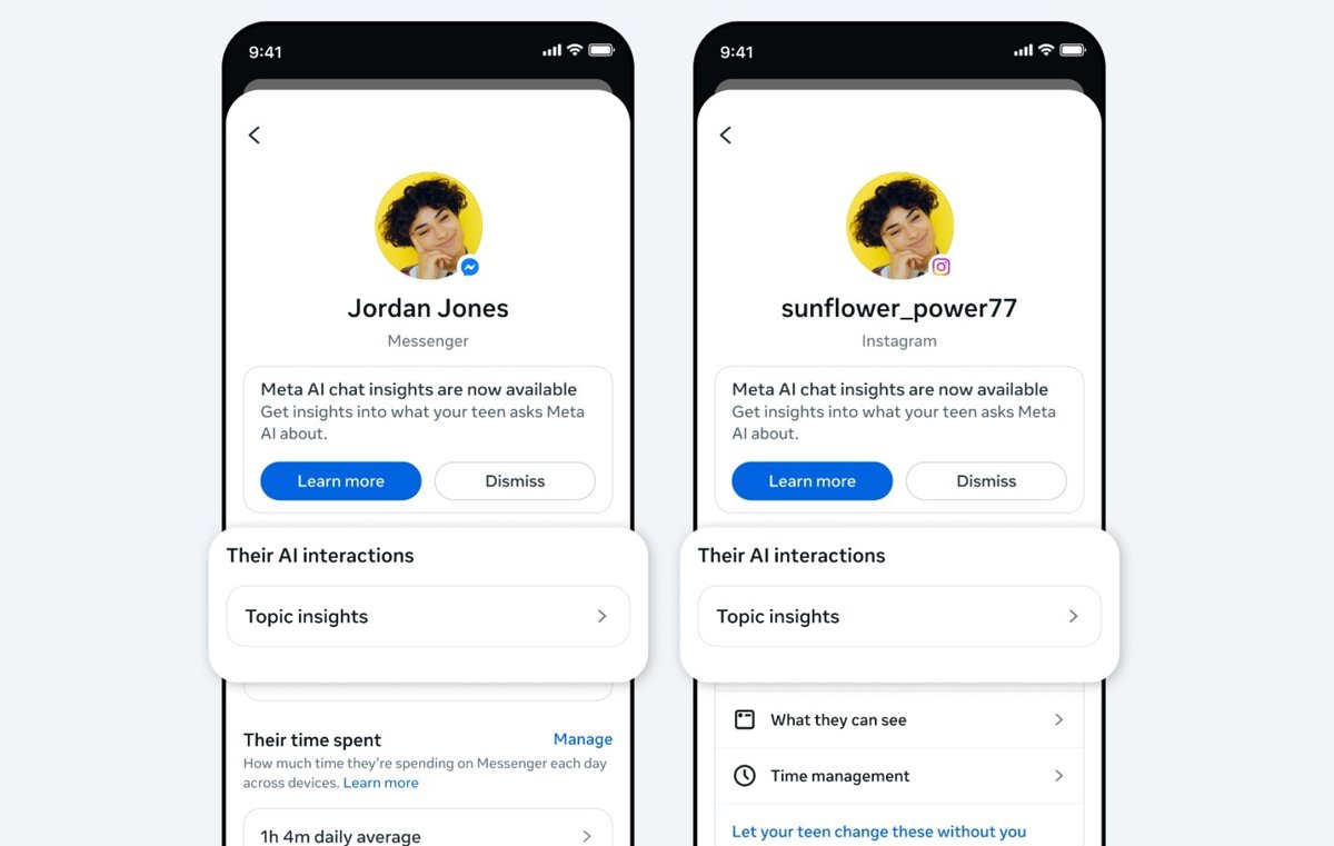 Os adolescentes também utilizam 'chatbots' de inteligência artificial e, para que os pais possam compreender melhor essas interações, a Meta ampliou seus controles parentais para que possam consultar os assuntos das conversas que mantêm com a Meta AI.